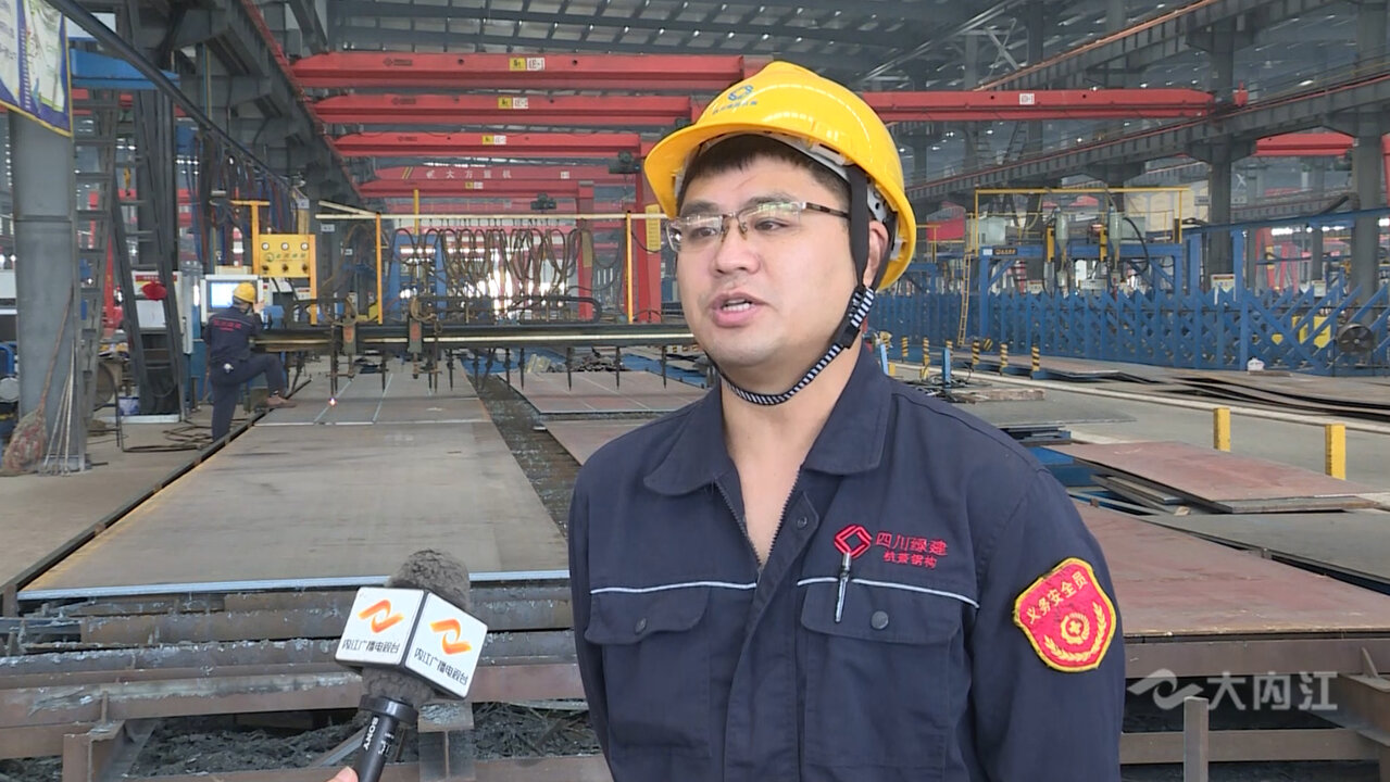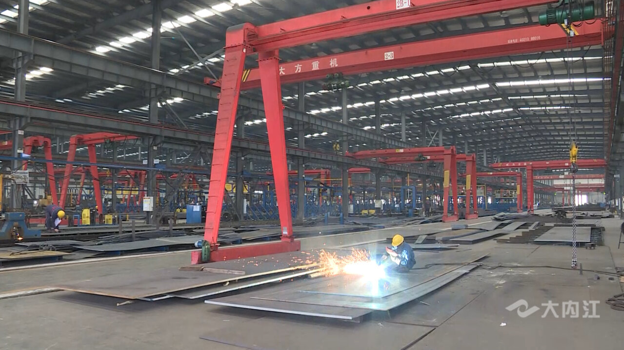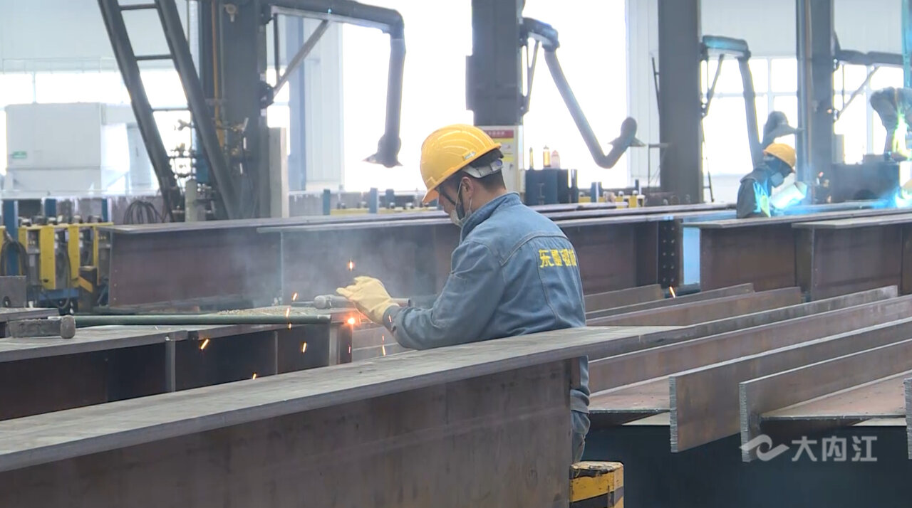 走进位于内江高新区白马园区的四川绿建杭萧钢构有限公司生产车间内,焊花四射、机器轰鸣,工人们正加紧进行产品数控切割、焊接等作业,全力以赴赶制生产订单。