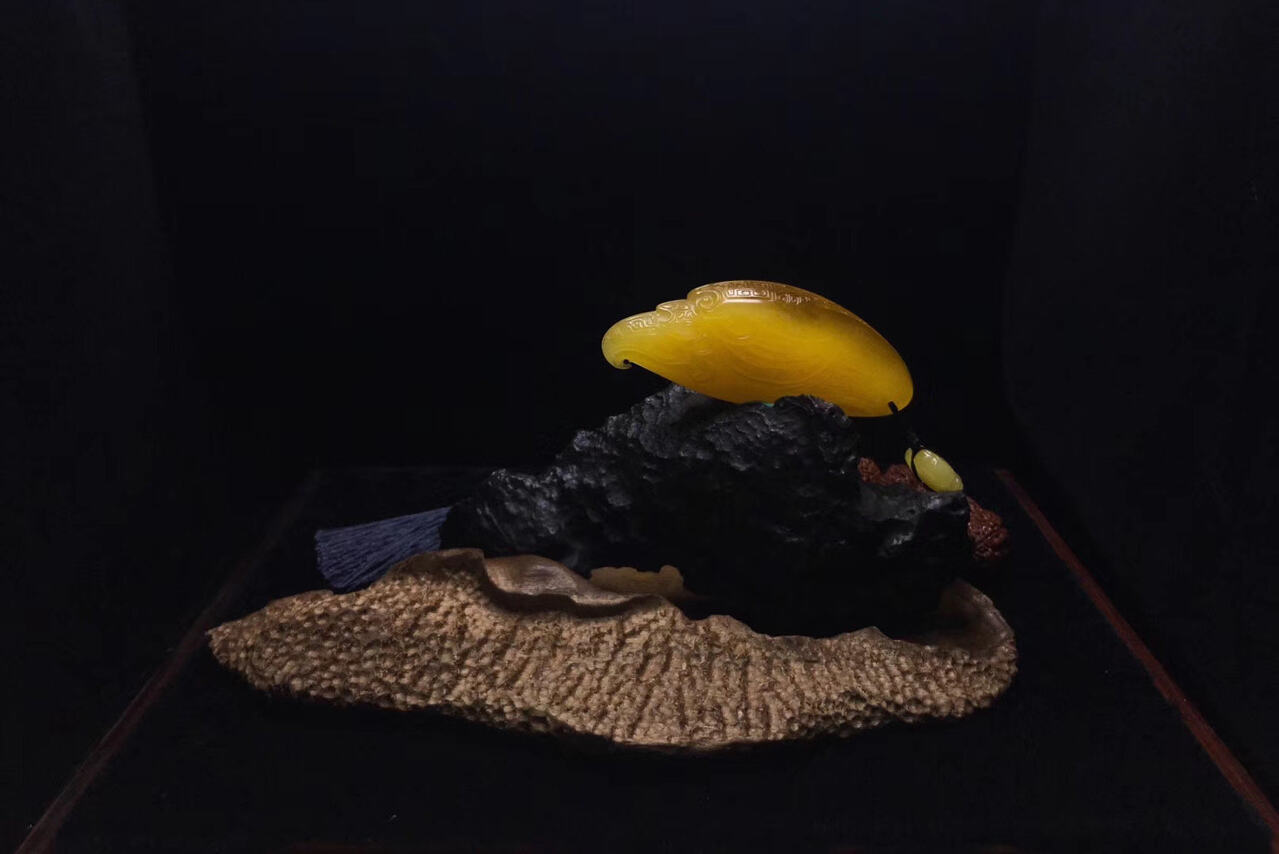这几年来,黎虹羽还不断尝试在玉雕创作时融合多种材料。她以金丝楠木表现云海,以音石表现大山,再用蜜蜡雕刻成栩栩如生的鹰头,刻划出一件雄鹰在山巅展翅欲飞的作品。三种不同的材料,让作品呈现出刚柔相济的美感,让人眼前一亮。