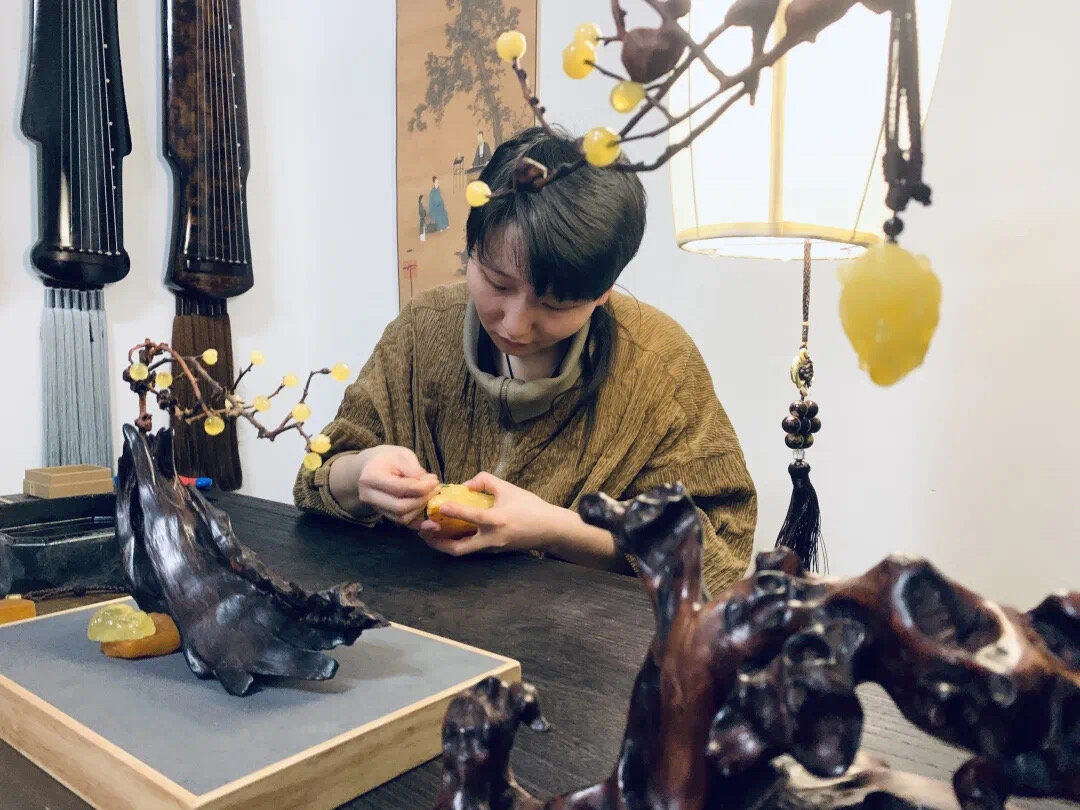在黎虹羽祖爷爷那一代,“川南玉雕”主要还是面对富裕阶层进行销售。在黎虹羽回到四川以后,最初走的还是高端定制路线。不过作为系统学习了美术理论的手艺人,她的作品在传统之外多了不少设计的美感。