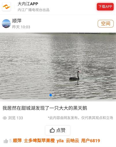 网友投稿 | 甜城湖里发现了一只大大的黑天鹅!