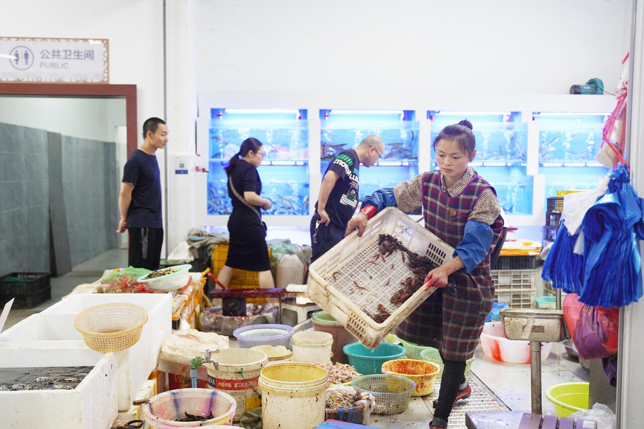 “我是主动搬过来的,新市场给我们这种卖水产的店都弄了专门的排水沟,我们产生的垃圾现在都要倒去专门的地方,你看现在市场内基本都闻不到异味,干净卫生多了。”桂湖街农贸市场柴记水产老板娘柴丹说到,以前旧市场内所有水产店比较分散,并且她自己的店铺位置较偏,更多都是回头客,如今将所有水产店集中起来,老客户不会流失的同时,也有利于发展新客户。