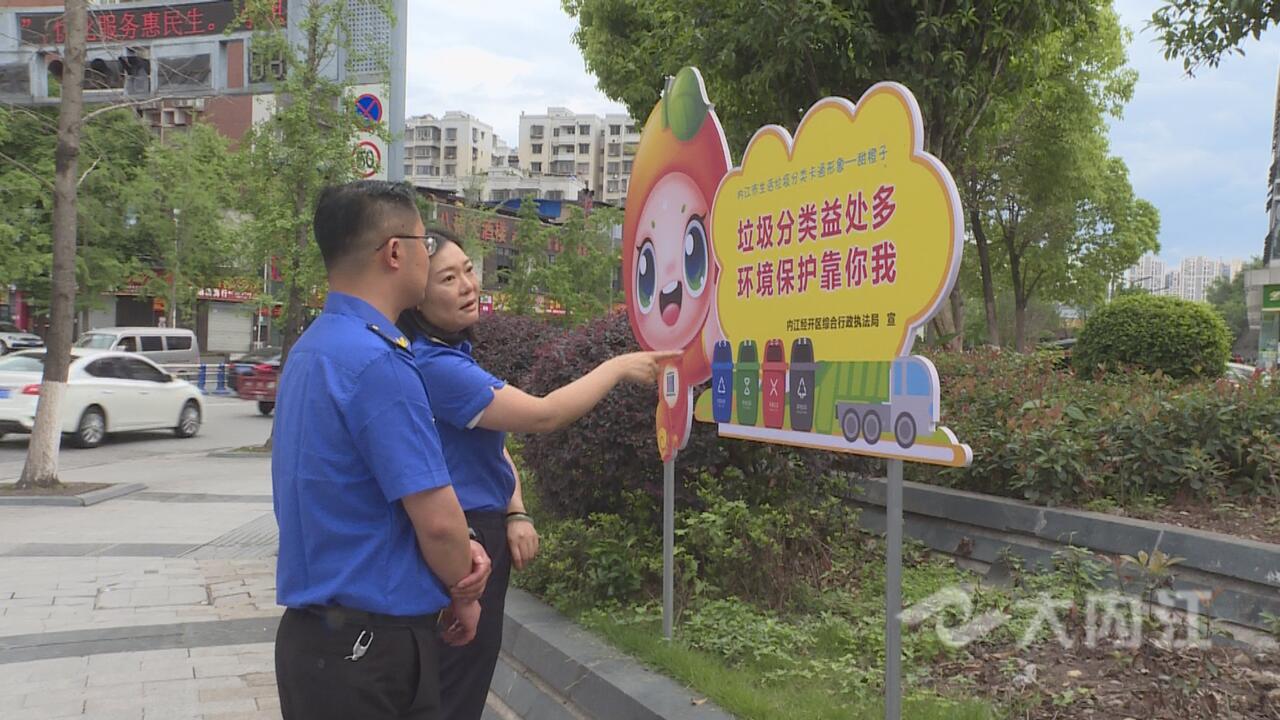 据内江经开区综合行政执法局垃圾分类办公室工作人员黄涛介绍,结合创文工作,内江经开区对全区垃圾分类收集设施进行了提升改造,在全区显眼位置设置大型垃圾分类广告25处,并且成立专班,每日对全区重点点位的垃圾分类工作进行督促指导,并组织“回头看”,发现问题立行立改。