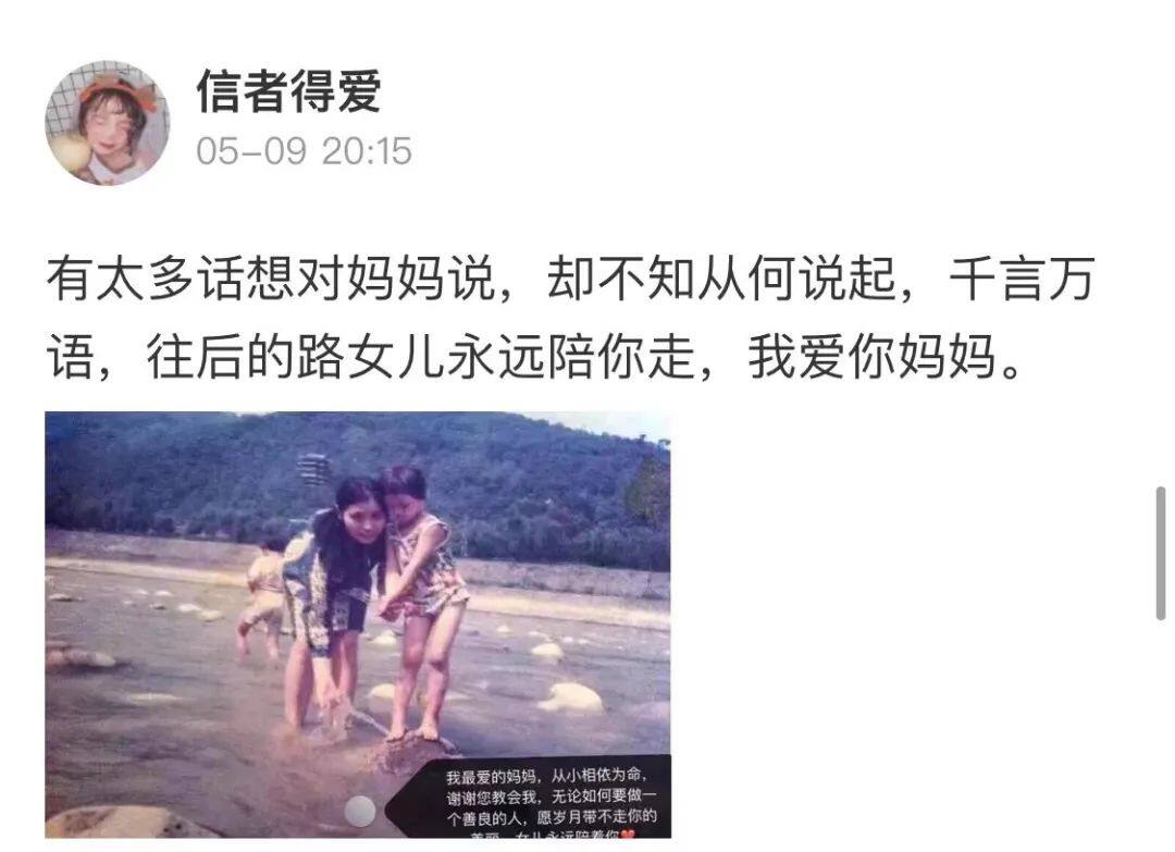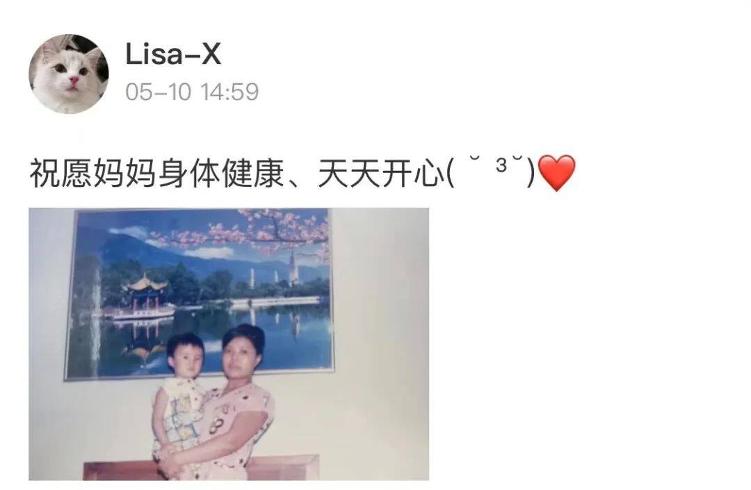 晒出了和妈妈的
