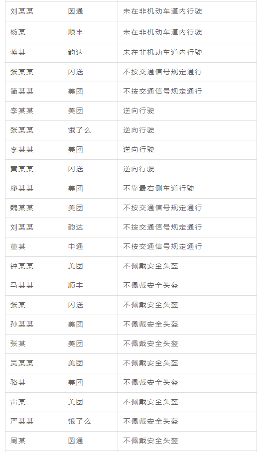 通报快递和即时配送从业人员个人