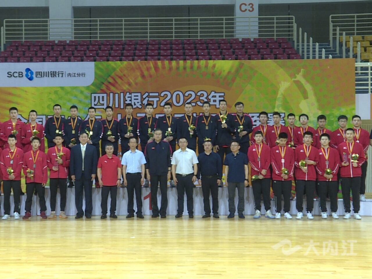 时间:2023-05-20 11:08:47 来源:内江广播电视台5月19日,四川银行2023年全国青少年U17男子排球冠军赛在内江市体育中心落幕并举行颁奖仪式。内江市政府副市长张永出席颁奖仪式并为获奖队伍颁奖。