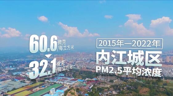 大气环境方面,内江城区PM2.5平均浓度由2015年的60.6微克每立方米下降至2022年的32.1微克每立方米,优良天数率由71.3%提高到84.1%。