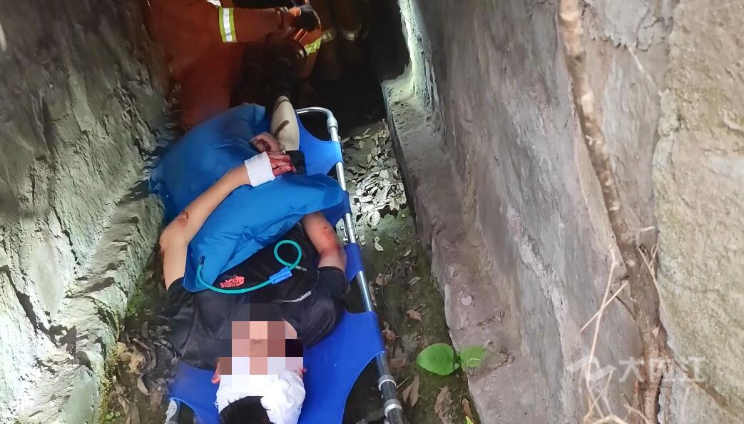 消防救援人员到达现场后,医护人员称被困者头部及腰部受伤。在了解情况后,消防救援人员使用折叠式担架及伸缩梯进行救援。由于排水渠内空间狭小,给救援工作带来了困难。消防救援人员将被困人员固定好后,与现场医护人员合力将被困人员从排水渠出水口抬出,20分钟后,被困人员终于成功脱困。