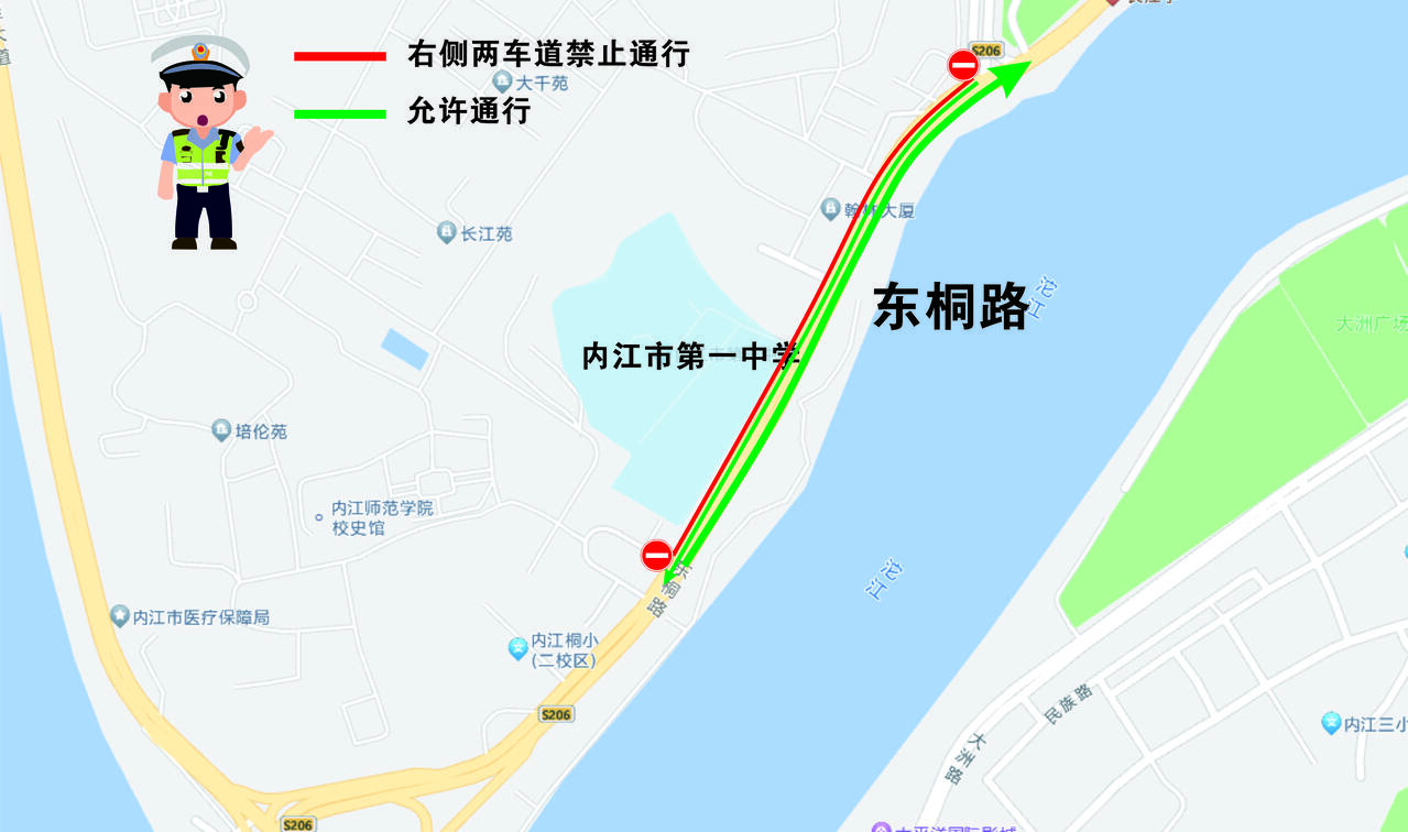 3、内江一中和内江六中在6月8日14:00至15:40期间,一中考场外东桐路(大千路至师院路口段)、六中考场外的育才路、太白路、兴隆路、星桥街实行全路段交通管制,禁止一切车辆通行。