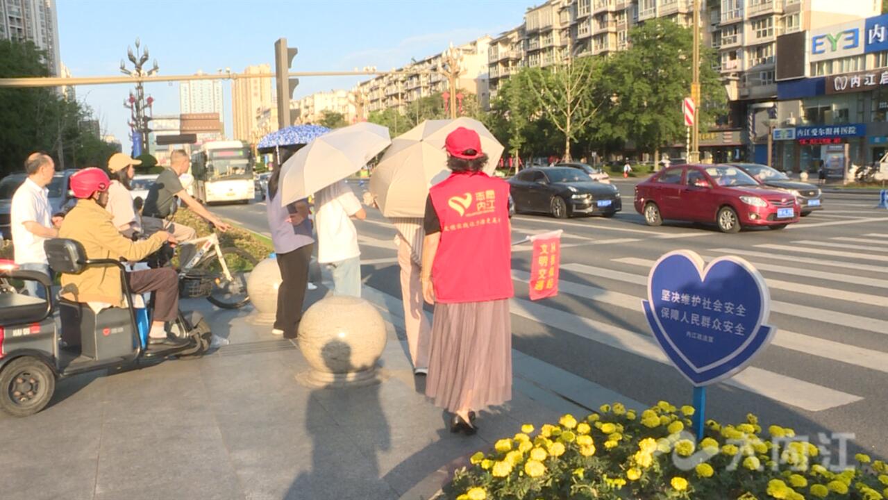 6月5日,记者在市中区环城路、东兴区汉安大道看到,来自市自然资源规划局、中国电信内江分公司的干部职工身着红马甲积极开展文明交通劝导,用实际行动让文明出行成为甜城亮丽风景。