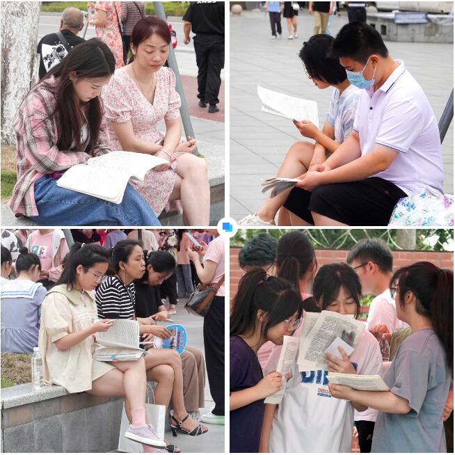 有的学生争分夺秒再背几首古诗词,有的孩子按捺不住激动和家长分享自己此时此刻的心情,还有的学生在聆听老师的答题顺序和建议......