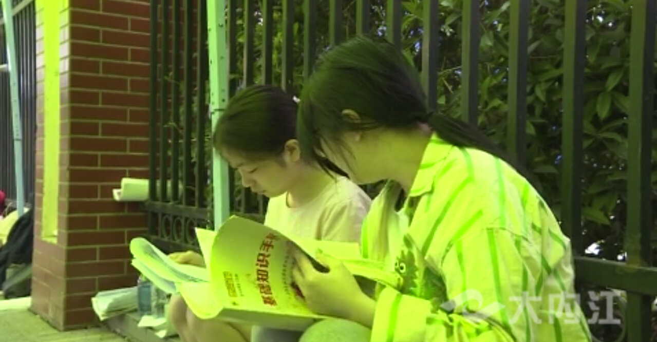 在内江一中考点,不少考生提前一个多小时赶到考点,在场外拿出书本笔记,抓住进场前的关键时机,多看一眼知识点,查漏补缺。