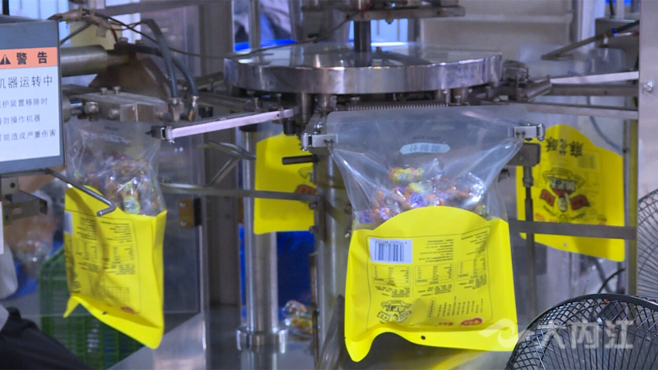 在黄老五花生酥的包装车间,记者看到,一个个检验合格的花生酥、米花酥、麻花等各类甜食产品正被传送出来,8台包装机械也是马力全开,现场一派繁忙景象,接下来,这些产品将随着物流发往全国各地,让各地人民尝到内江甜。