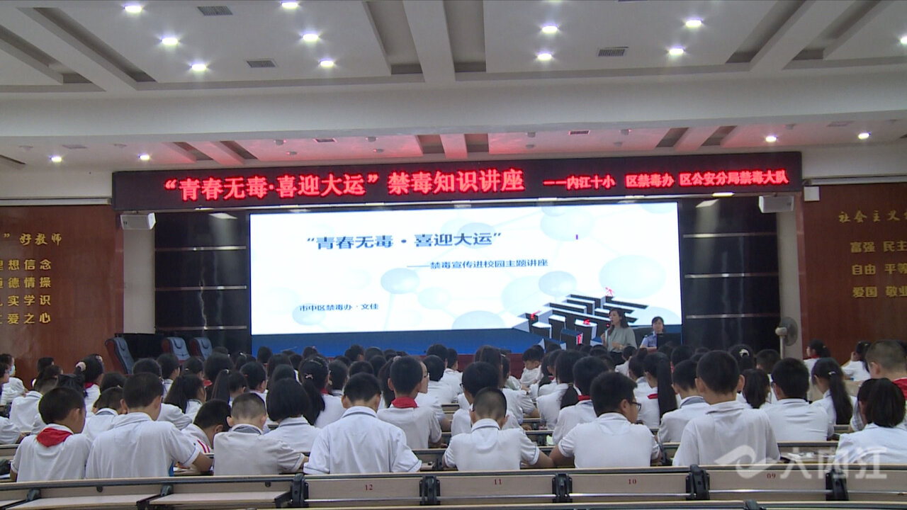 时间:2023-06-19 15:15:46 来源:内江广播电视台在第36个国际禁毒日即将来临之际,近日,内江市第十小学校联合市中区禁毒办、区公安分局禁毒大队开展“青春无毒·喜迎大运”禁毒宣传进校园活动,向在校师生宣传普及禁毒知识,进一步提高青少年识毒、防毒、禁毒和拒毒意识,不断增强抵制毒品的能力。