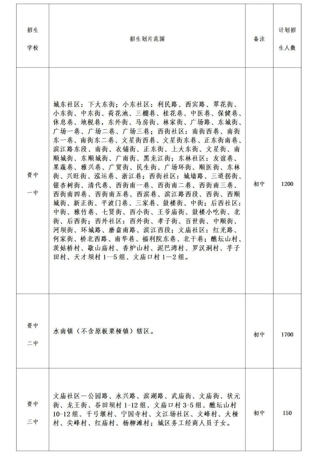 资中三中:招收划片区域内的户籍生、优抚生和购房生;符合条件的务工经商人员随迁子女。