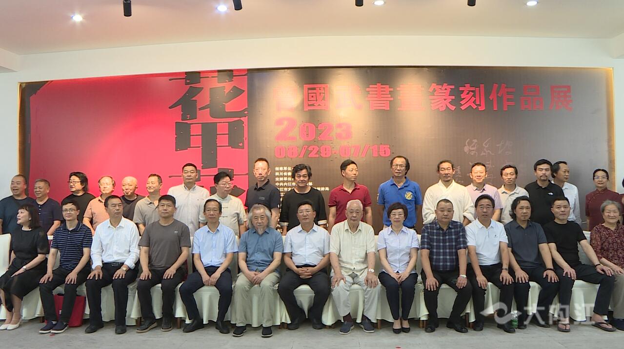 时间:2023-06-30 09:16:28 来源:内江广播电视台6月29日,大千画派名家系列个展——“花甲花开”曾国武书画篆刻作品展在张大千美术馆开幕。市委常委、宣传部部长、市总工会主席蒋学东出席并宣布开幕。