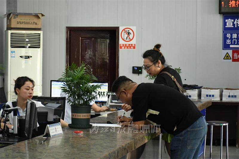 6月27日,购车群众在内江汇金二手车交易市场机动车登记服务站办理登记业务