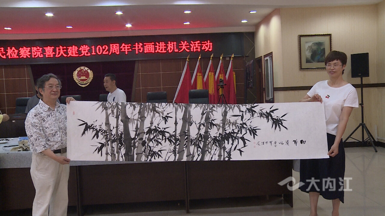 时间:2023-07-03 10:31:39 来源:内江广播电视台为庆祝中国共产党成立102周年,加强检察机关文化建设,丰富检察机关文化生活,近日,由区委宣传部,区老干局、区文学艺术界联合会主办,区老年书画研究会承办的“起航新征程 奋进新时代 大千书画进万家”活动走进市中区人民检察院。