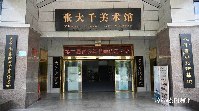 张大千美术馆门口,大千画派创研基地的招牌赫然醒目,门楣的电子屏上闪烁着“第二届青少年书画传习大会”字样。