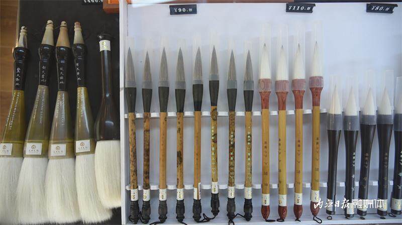 ▲8月22日下午,大千画派创研基地筹备第二届青少年书画传习大会研学活动,图为大千笔。
