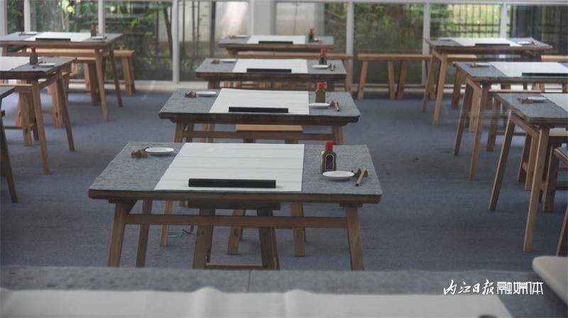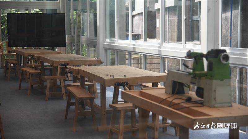 往里走,两侧的体验工坊内,整齐地摆放着文房四宝和榫卯器械,届时研学团队将深入其中,体验非遗大千笔和榫卯的独特魅力。