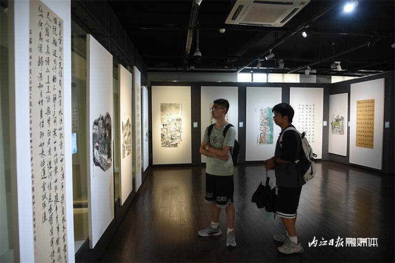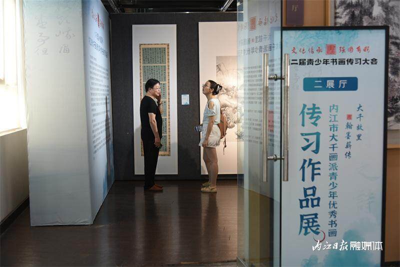 ▲8月22日下午,大千画派创研基地筹备第二届青少年书画传习大会研学活动,图为市民观展。