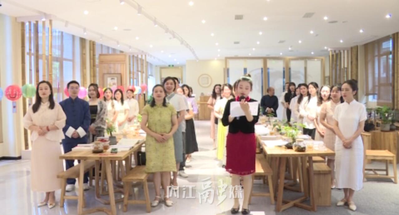 当天下午4时,参加活动的女士身穿汉服、旗袍,男士穿着中式长袍依次入场。大家围坐一起,相互讨论、分享读书感悟,互相激发阅读热情,现场书香氛围浓厚。随后,结对教师现场签订协议,彼此承诺“并肩前行、精诚团结,言传身教、以身作则......”