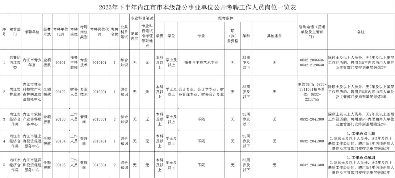 考聘岗位所需的具体条件及资格要求,详见《2023年下半年内江市市本级部分事业单位公开考聘工作人员岗位一览表》(附件)。