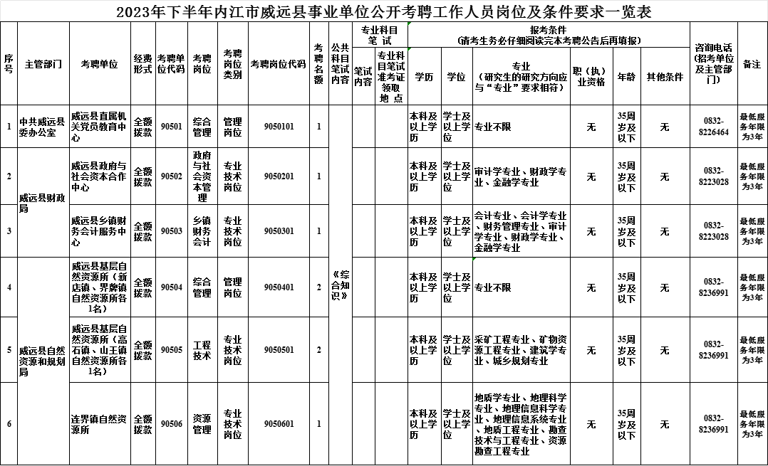 考聘岗位所需的具体条件及资格要求,详见附件《2023年下半年内江市威远县事业单位公开考聘工作人员岗位及条件要求一览表》。