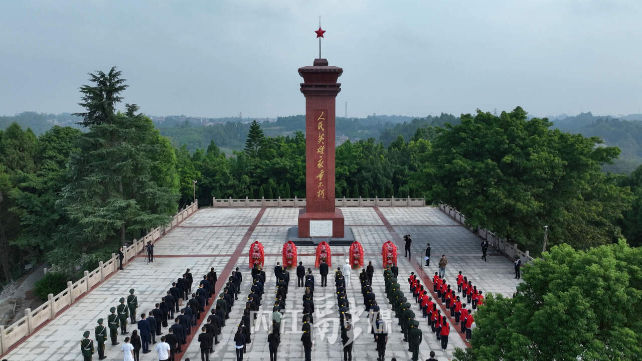 天地英雄气,千秋尚凛然。在内江市革命烈士陵园,陵园苍松翠柏环抱,革命烈士纪念碑巍然耸立、静穆庄严,“人民英雄永垂不朽”8个镏金大字令人肃然起敬,参加仪式的各界代表,面向纪念碑整齐列队。