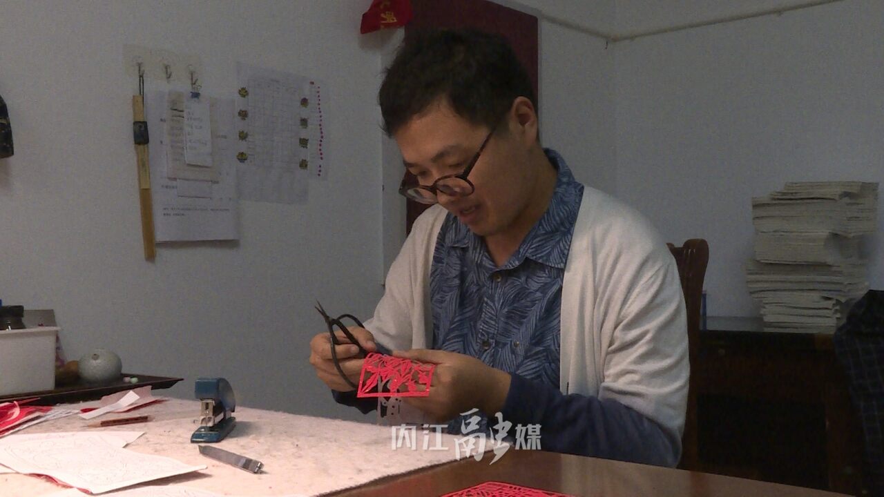 李有生告诉记者,“内江的节日氛围非常的浓厚,到处挂满了国旗、鲜花,政府也组织了一些非常有意义的送文化进社区的活动。作为一名东兴区的剪纸非遗传承人,准备继续创作一系列的和内江本土文化风光相关的剪纸作品,为内江的文化宣传助力加油。”