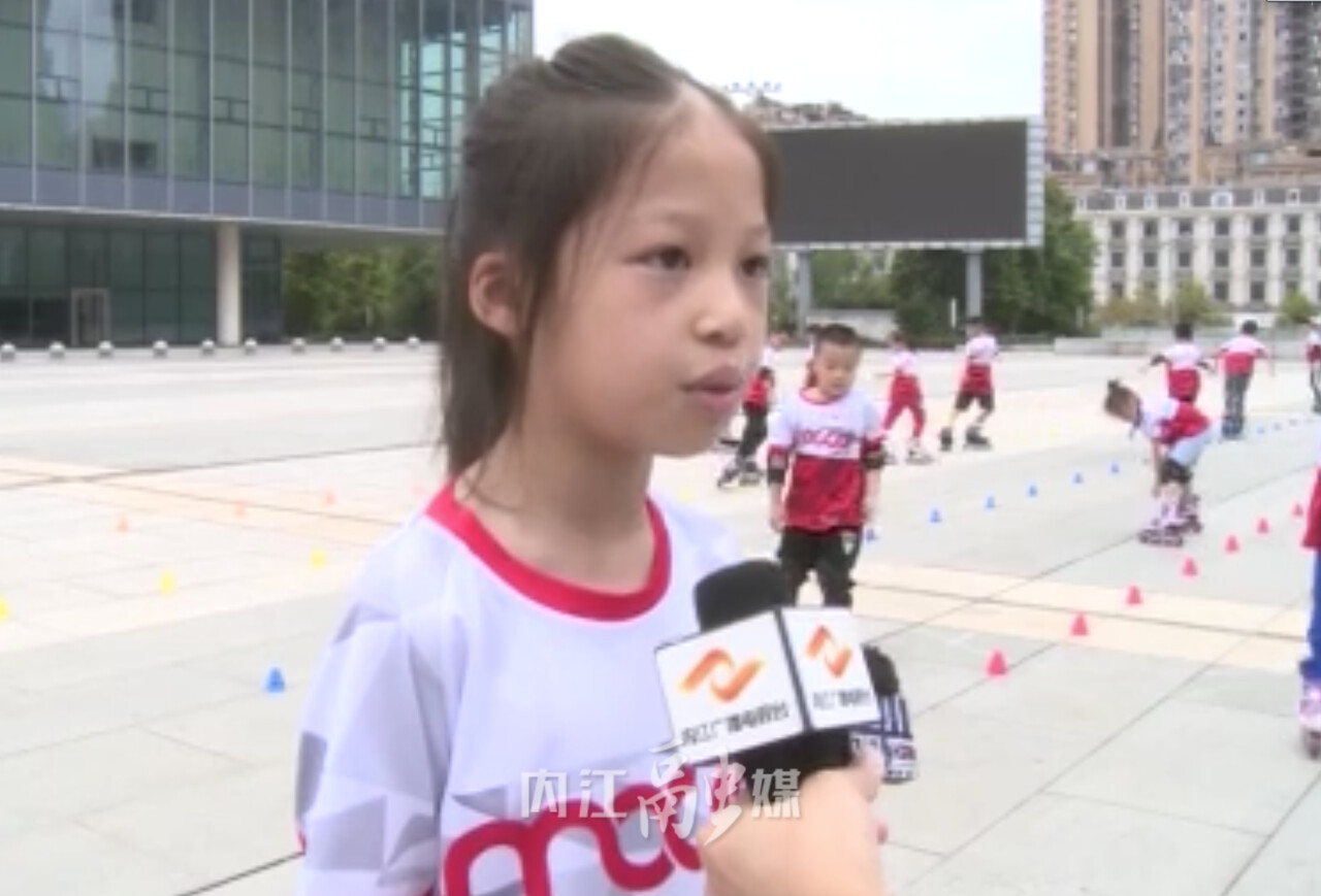 内江市轮滑队队员周思筱:“我今年9岁了,学习轮滑已经四五年了,我第一次看到它就觉得很有趣,很酷,我也想像电视里大哥哥大姐姐一样光荣,我也想成为世界冠军,为四川省内江市争光。”