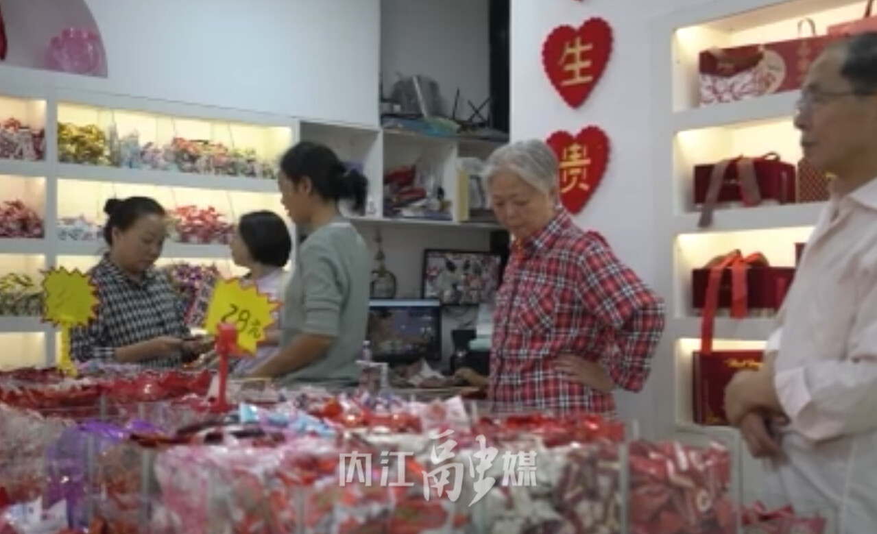 日前,记者在位于市中区黄桷井商城的糖果零售店看到,前来挑选喜糖的顾客络绎不绝。