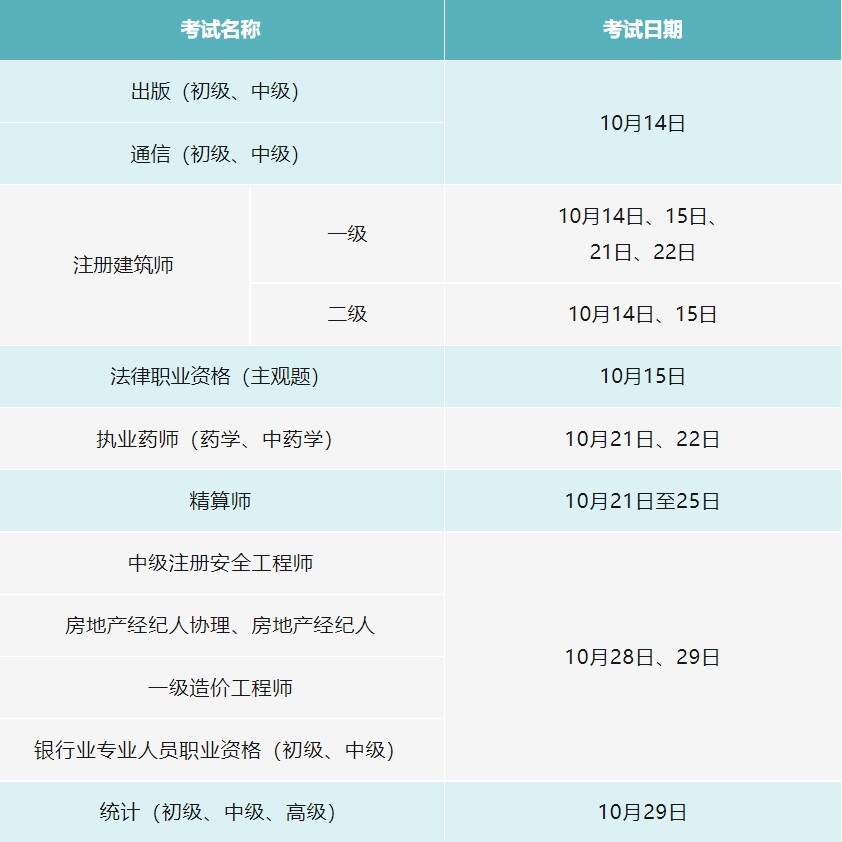 温馨提示!10月有这些考试,别错过