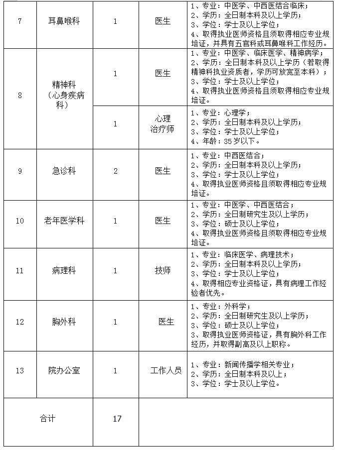 根据《内江市中医医院自主招聘员额人员管理办法(试行)》文件精神,经医院党委研究决定,面向社会公开招聘员额人员17名。