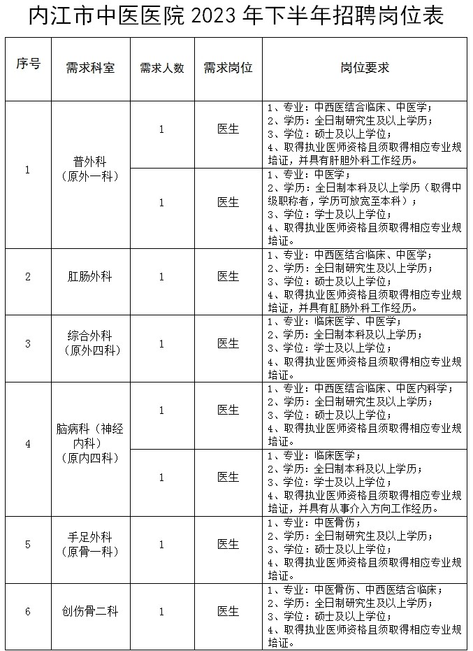 时间:2023-11-01 09:39:45 来源:内江市中医医院微信公众号近日,内江市中医医院发布招聘员额人员的公告,详情如下。