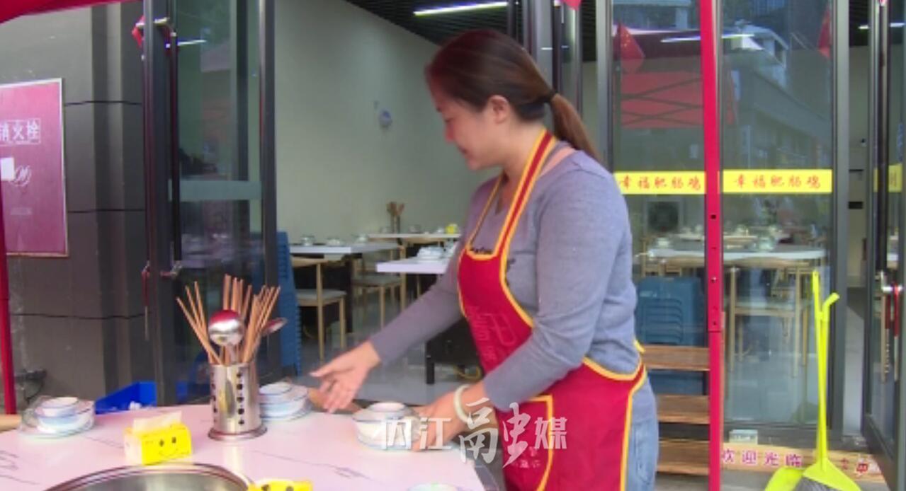 在城南新区三元汇美食集,下午四点多,餐饮店经营者周利燕正在店铺内仔细整理碗筷,摆放桌椅,检查菜品质量等,为晚上的营业进行各项准备工作。