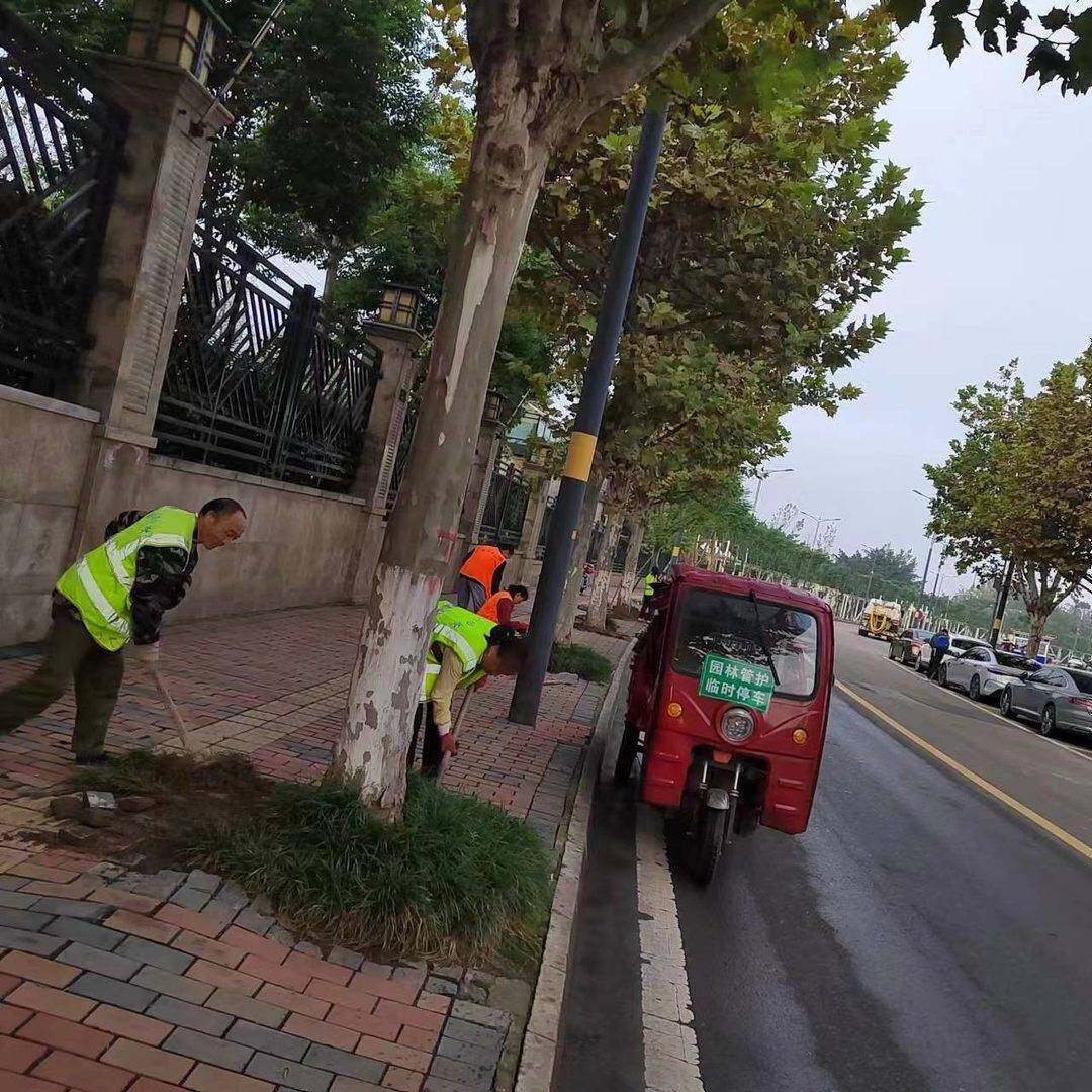 今年5月12日、10月16日,园林工人分两批,完成了清溪路从栖霞路口到四桥桥下停车场的277株梧桐树的移植。由于梧桐树根系发达,在移植的时候不可避免地造成部分树池损坏,所以栽植蓝花楹之后,工人们需要对树池进行复原,预计本周完成。