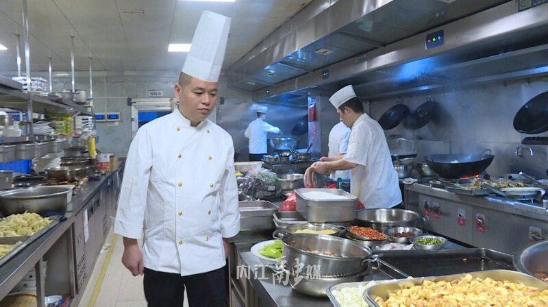 “(装盘)要注意份量均匀,要调整一下......”近日,记者来到位于东兴区汉安大道的汉和盛宴餐饮店看到,大厅里顾客往来如梭,厨房内厨师长马杰也正忙着检查菜品,确保顾客能吃上放心满意的菜肴。