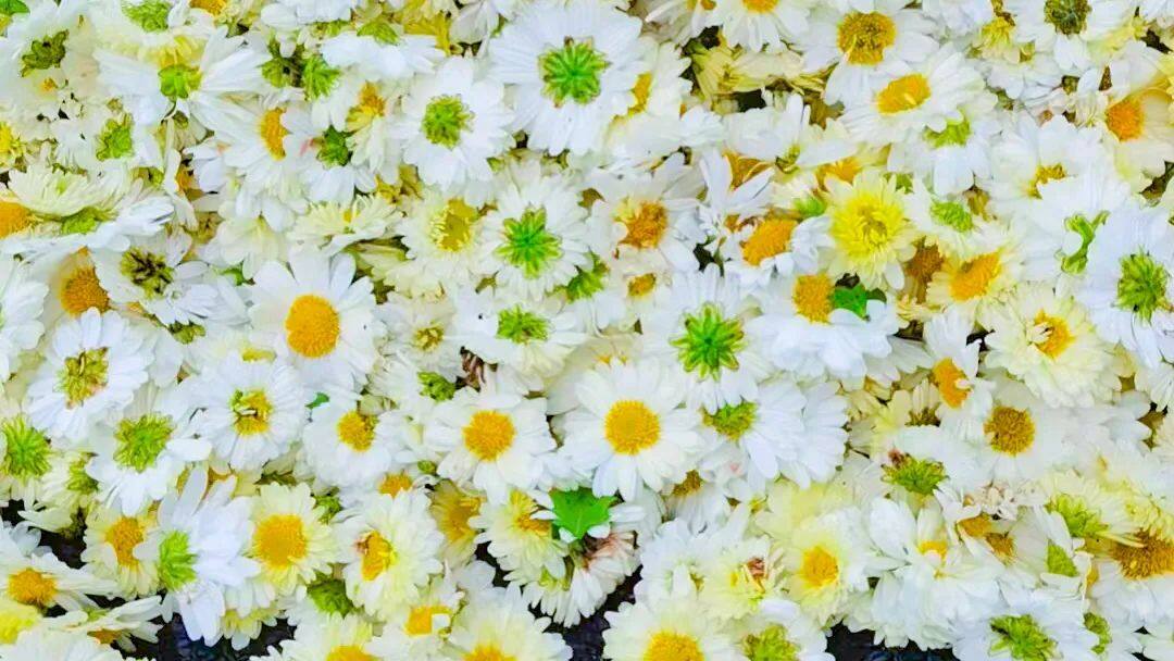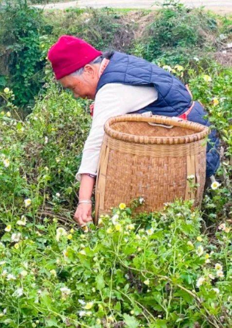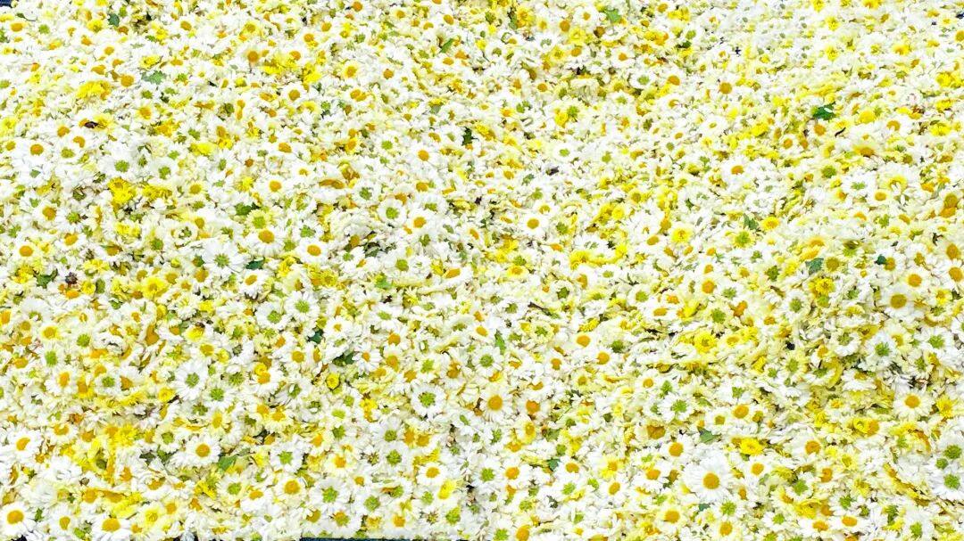 采摘的菊花经过分拣、烘干等初加工后,作为药材或花茶销售,晒干后的菊花还能作为干花进行售卖。