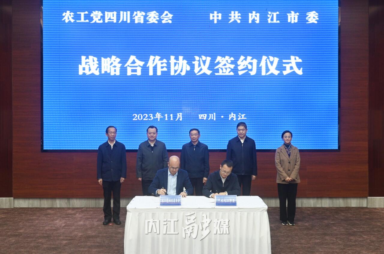 11月15日,农工党四川省委会与中共内江市委战略合作签约仪式在内江举行。根据协议,双方将在科教文卫社会事业、乡村振兴、生态环保、城乡融合发展等方面开展合作,助力内江高质量发展。