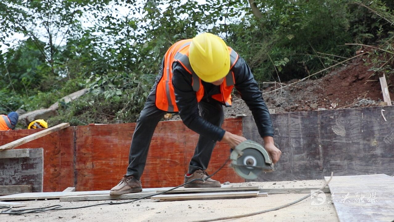 近日,记者在该道路改造现场看到,原有路基已被挖除,多名工人正在道路沿线清除排水沟泥沙和切割木板制作水沟支模,道路两端分别立有安全警示标牌,同时,有数位安全人员在现场指挥作业,并维护秩序,提醒过往行人和车辆安全通行。