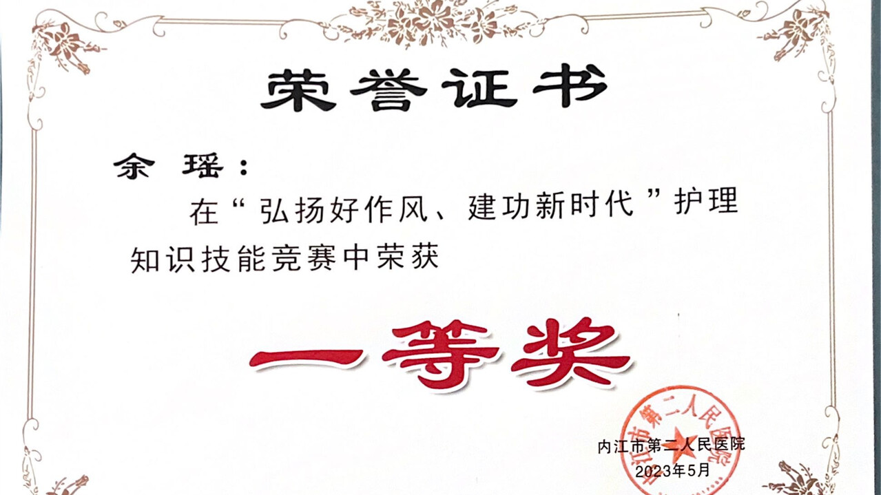 从事临床老年护理工作近10年,她始终坚持“一切以病人为中心,一切为病人着想”的服务宗旨,刻苦钻研业务知识,努力提高护理临床技能,怀揣着对护理工作的热爱之心奉献着自己的青春热血。她就是内江市第二人民医院呼吸与危重症医学科护理带教组长余瑶,前不久由内江市第二人民医院廖芋洁护理技能大师工作室选派,代表内江参加四川省首届康养护理职业技能大赛,并斩获医院护理项目第一名。今天我们一起走近余瑶,倾听她的故事。