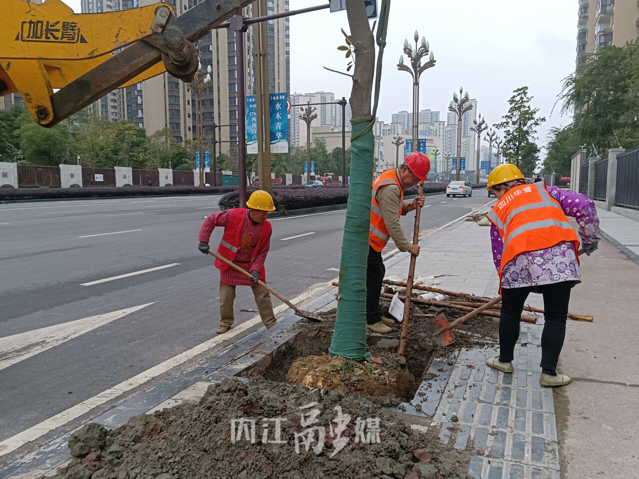 日前,在光华大道南段附近,东兴区城区行道树及绿地整治项目正在实施。十来名园林工人正在有序忙碌着。只见他们在吊车的协助下,将一棵棵绿化树木转移到人行道上,再相互配合着,扶树、固定、培土、夯实,将行道树栽入提前挖好的树坑中。据介绍,为切实做好行道树补植、美化城市环境,东兴区住建部门经过前期详细的摸底调查,确定了主城区管护范围内主次干道两侧有近900余株行道树需补栽,当前已完成50%以上,预计未来数日内将完成补栽。