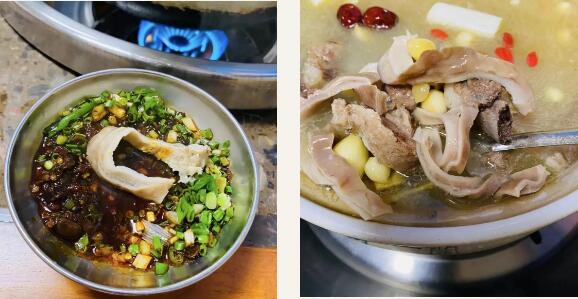 在内江,威远羊肉汤、隆昌羊肉汤尤为出名,人们把一碗原汁汤,放几片煮熟的羊肉,撒上葱花,一碗色泽乳白,口味鲜香醇正的羊肉汤就做好了。浓郁白汤喝下去只有鲜甜,第一口就被圈粉!