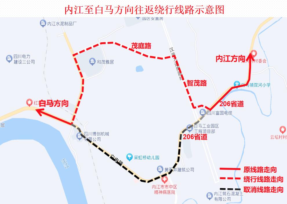 根据内江市公安局交通警察支队发布的《关于S427线富国电缆厂处(K48+399至K48+669)实施道路交通管制的通告》,2023年12月3日至2024年1月31日S427线富国电缆厂处(K48+399至K48+669)道路实行封闭施工,施工路段禁止所有车辆通行。为配合施工,我司决定自2023年12月3日起对途经的9条公交线路走向作临时调整。