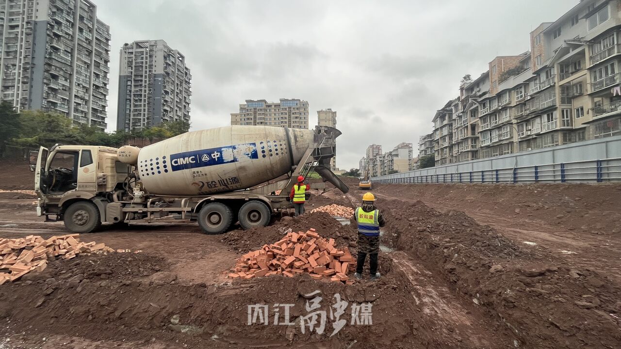 日前,记者来到项目施工现场看到,原先脏乱差的闲置空地现在已经被清除平整,挖掘机,水泥车等大型机械正在运作当中,工人们正在紧锣密鼓的进行着雨水沟的浇筑工作。