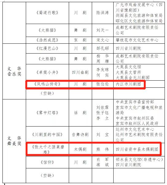 正在公示!内江这两个剧目入选第五届四川文华奖拟获奖名单