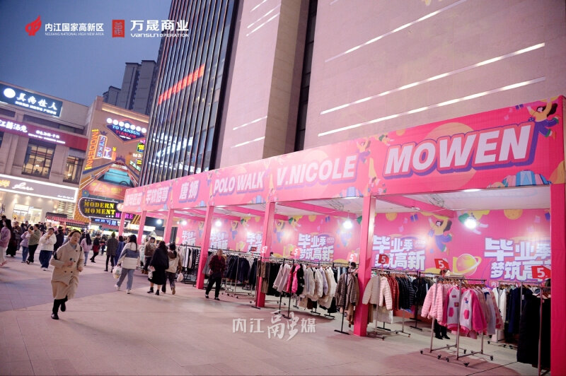 12月8日晚上,记者在万晟天街看到,现场市民络绎不绝,活动内容丰富多样:在市集区,摊位整齐地排列在广场上,琳琅满目的商品吸引市民驻足选购;舞台上,来自内江职业技术学院的学生带来了精彩的服装毕业作品走秀,现场观众热情洋溢,呼喊声不断。