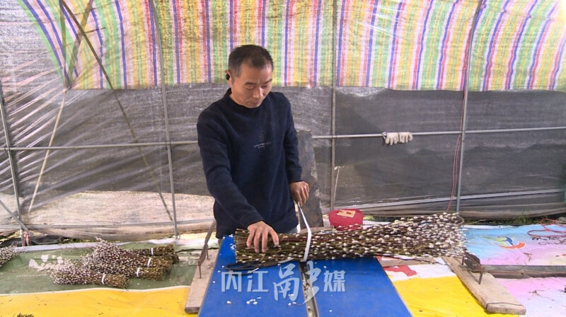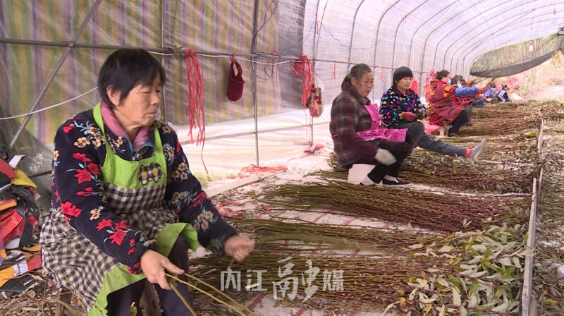 加工大棚内,数十名村民正在对刚收割回来的银柳进行加工处理,根据大小分类堆放,再经过捆扎、剥壳、整理、染色等工序,一束束鲜艳的花束呈现在眼前。