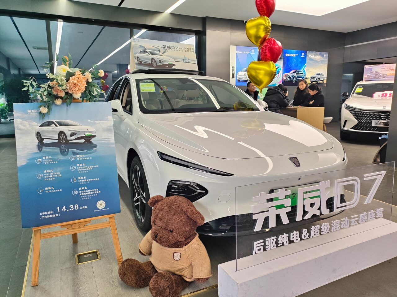 “我们给出绝对诚意,每一款都有优惠。”销售经理介绍道。其中,荣威全新i5原价6.89万元,优惠后4.99万元;荣威D7超级混动,交2千元抵1.5万元,限时权益价10.98万起,36期零利息;荣威D7 EV后驱纯电,交1千元抵7千元,14.38万元起,享3年零利息,三电系统终身质保,送免费充电桩及安装服务;荣威全新RX5,原价12.79万元,特价按揭专享直降3万元,仅需9.79万元;i6MAX EV滴滴出行版,三电质保(运营车辆6年或60万公里),电池衰减(5年或60万公里衰减大于30%,可以免费更换电池)。